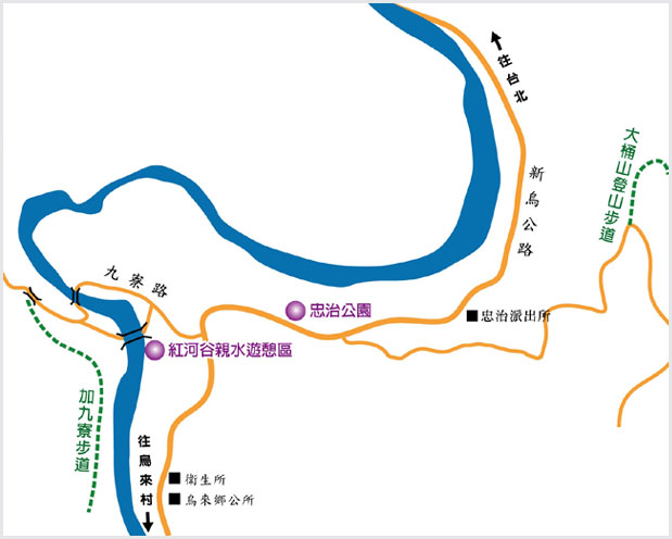 客運:搭乘新店客運往烏來方向之班車至忠治村。
